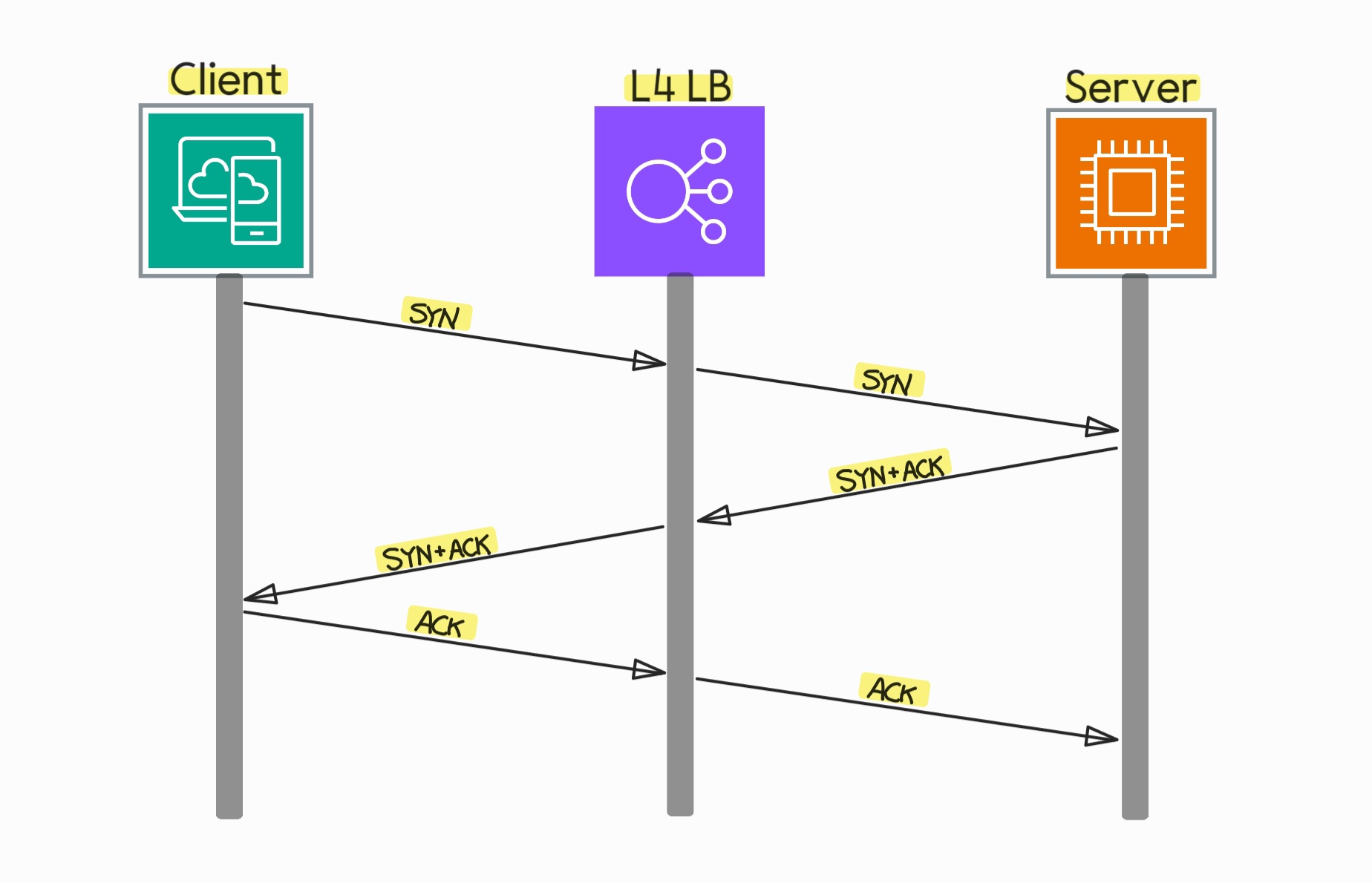 HTTP message를 해석하기 위해 segment를 재조립할 필요가 없다는 것은, 클라이언트와 L4 LB가 직접 TCP 연결을 맺지 않아도 된다는 말과 같다. L4 LB는 그저 목적지 서버만 밸런싱해주어 segment를 흘려보내고, 그렇게 온 segments를 재조립하는 것은 서버의 역할이 될 것이다. 따라서 논리적으로 TCP 연결은 1회만 발생한다.